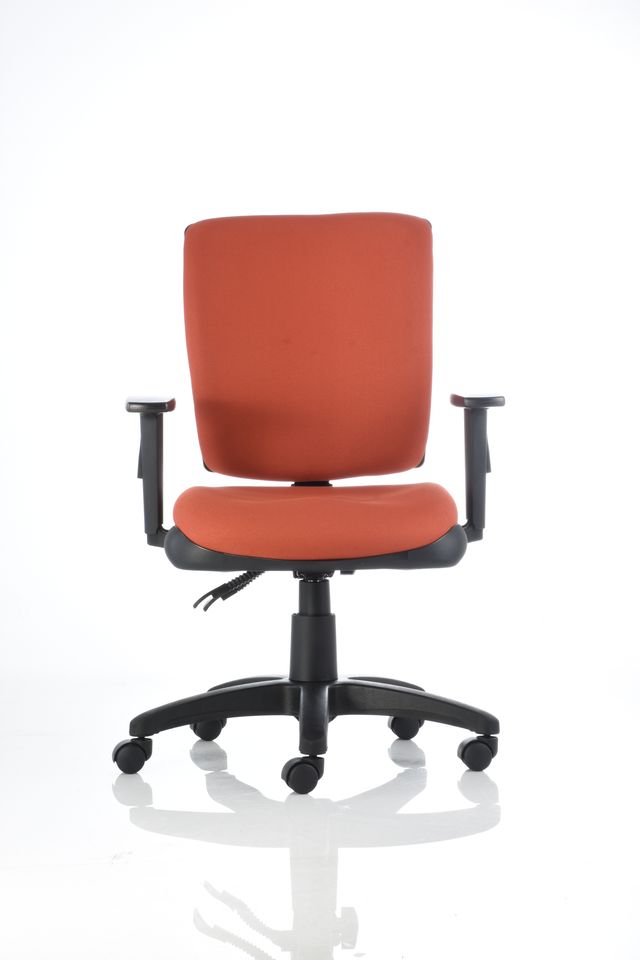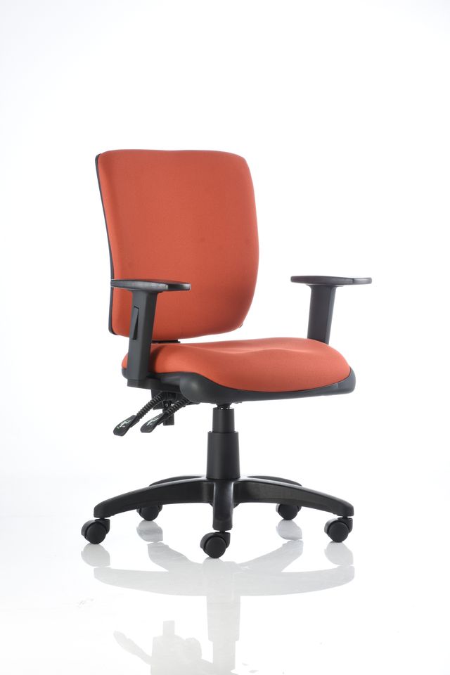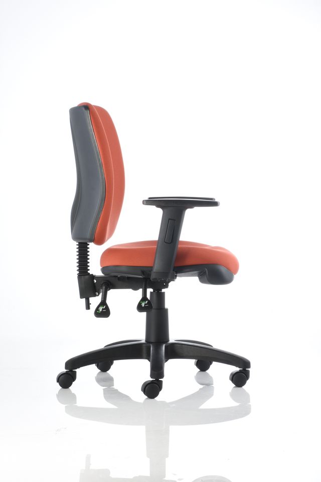 Silla operativa de respaldo alto con brazo ajustable BR-11, mecanismo de dos palancas, poliuretano inyectado en el asiento y tapizada en color negro.