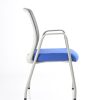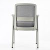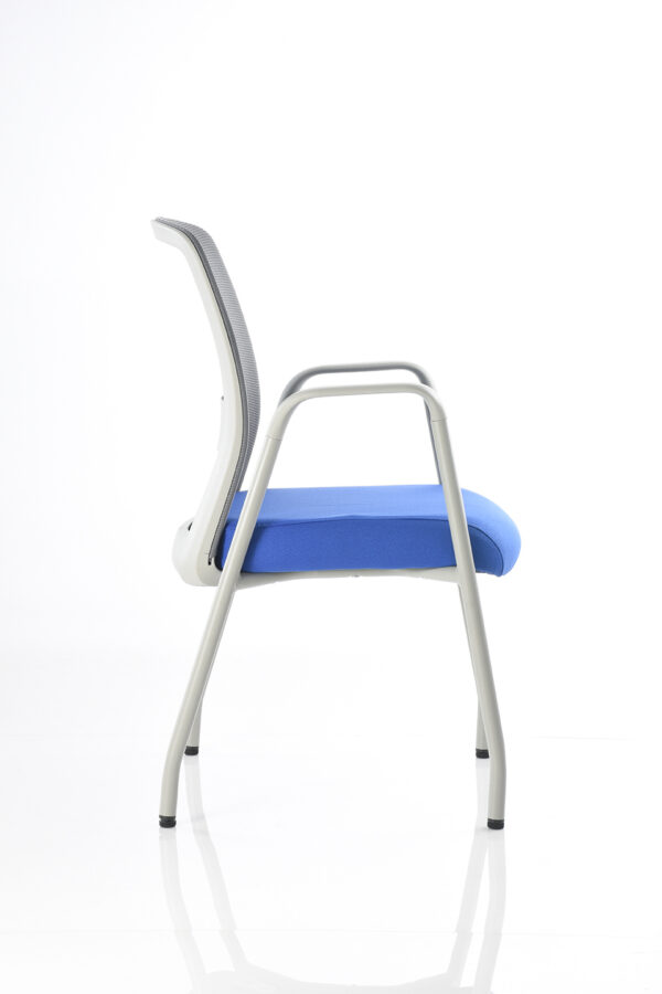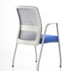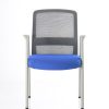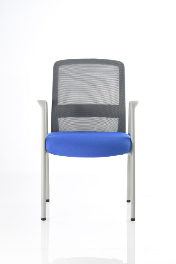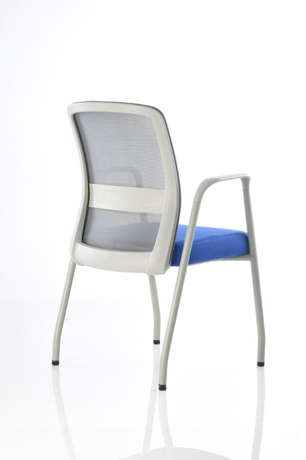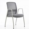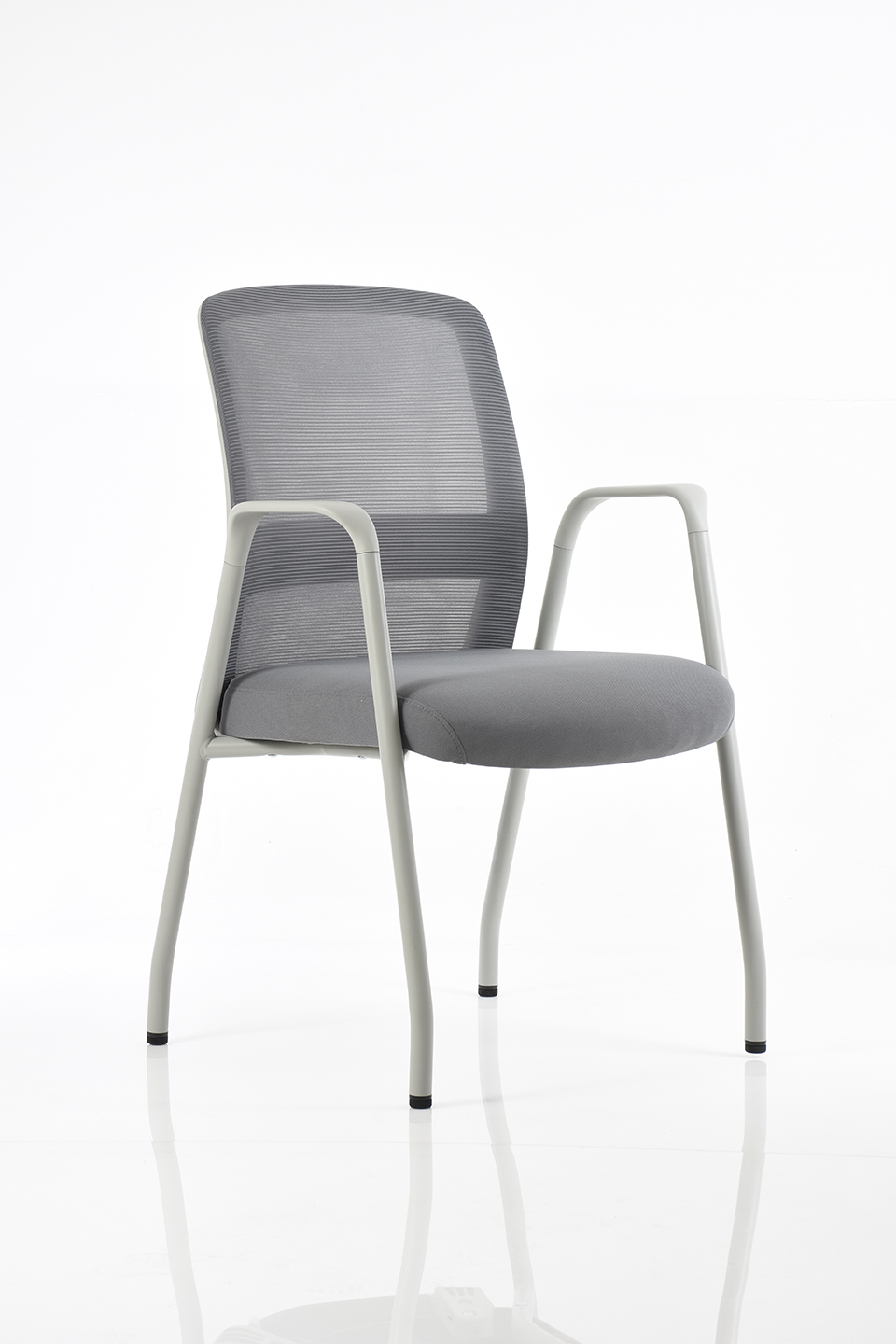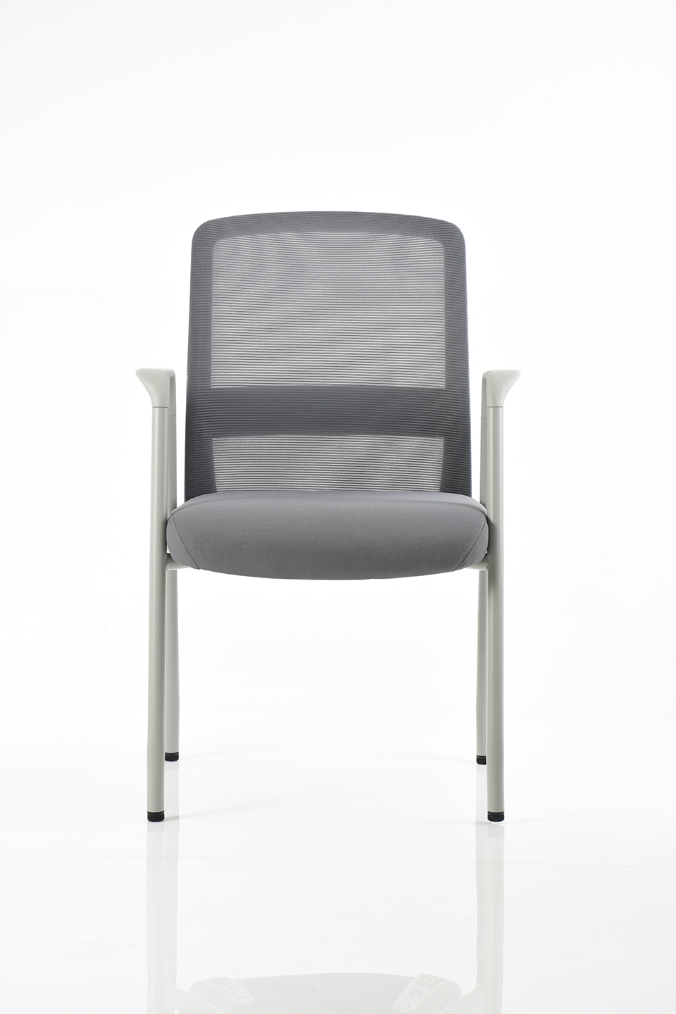 Silla para visitante fabricada en estructura de tubo rectangular con acabado en pintura color gris, brazos de polipropileno color negro, respaldo en malla, asiento amplio tapizado en tela y tapa protectora en el asiento tapizada en color gris.